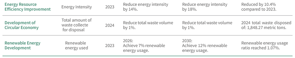 Increase the proportion of renewable energy use. Increase the use of renewable energy through self-generation and self-use or procurement, or sell renewable energy to create additional business income for the Company.