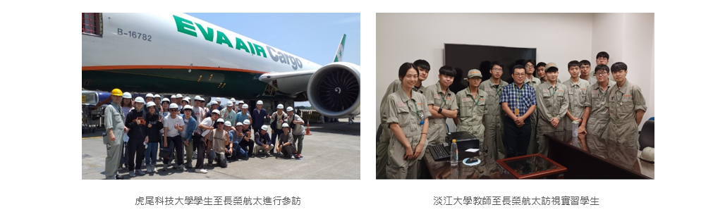 長榮航太為培養莘莘學子發掘自我興趣與未來職涯之路,透過與學校單位合作辦理參訪活動,增加對於航太產業之認識,亦提升自身就業率。2024年度與台灣大學、成功大學、朝陽科技大學、虎尾科技大學與萬能科技大學進行建教合作辦理企業參訪活動,增加學生對航空機械維修及維護之專業知識,培育未來專業人才。除此之外,長榮航太亦積極至各大專院校招生,以及提供企業實習機會,使學生及早探索自身求職道路。2024年舉辦之參訪為13場,每場合計約26人參與。