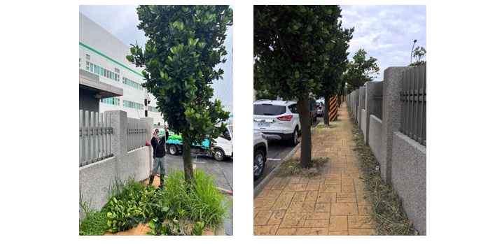 - 與觀音產業服務中心合作,修剪成功路人行道旁路樹,由公司員工認領路段之路樹,以達成街景美化與方便行人通行,並期許未來持續執行修剪樹木行動,讓周邊環境得以維持美化與清潔。